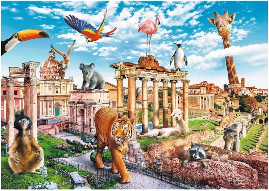 Originálna ilustrácia kombinuje rímske pamiatky a exotické zvieratá. Zábavný detailný obraz udrží pozornosť a skladanie si užije celá rodina.