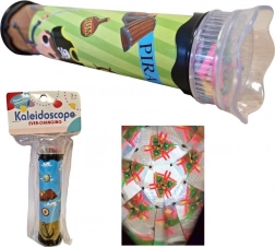 Detský farebný kaleidoskop s obrázkom piráta. Rozmer kaleidoskopu cca 17 × 5 cm. Rozmery balenia cca 10,5 × 24 × 5 cm. Vek 3+