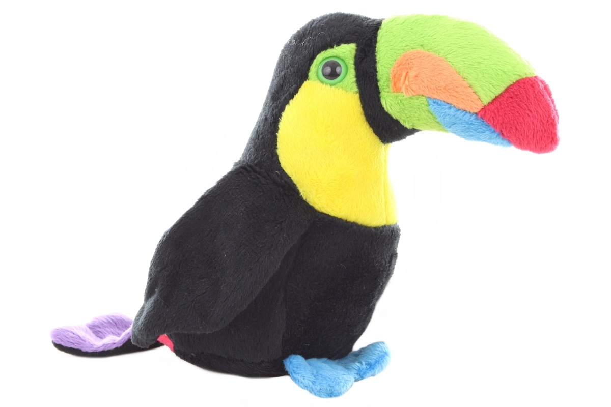 Plyšový tukan s rozmermi cca 15 × 8 × 14 cm je perfektný prvý maznáčik pre bábätká aj staršie deti. Vďaka mäkkému plnenému telu sa skvelo drží v rúčkach a láka k objatiu. Realistické farebné prevedenie zobáka aj peria z neho robí roztomilý doplnok do detskej izbičky.