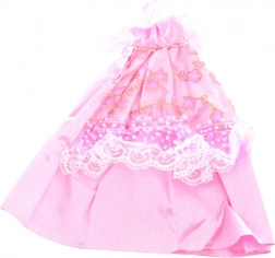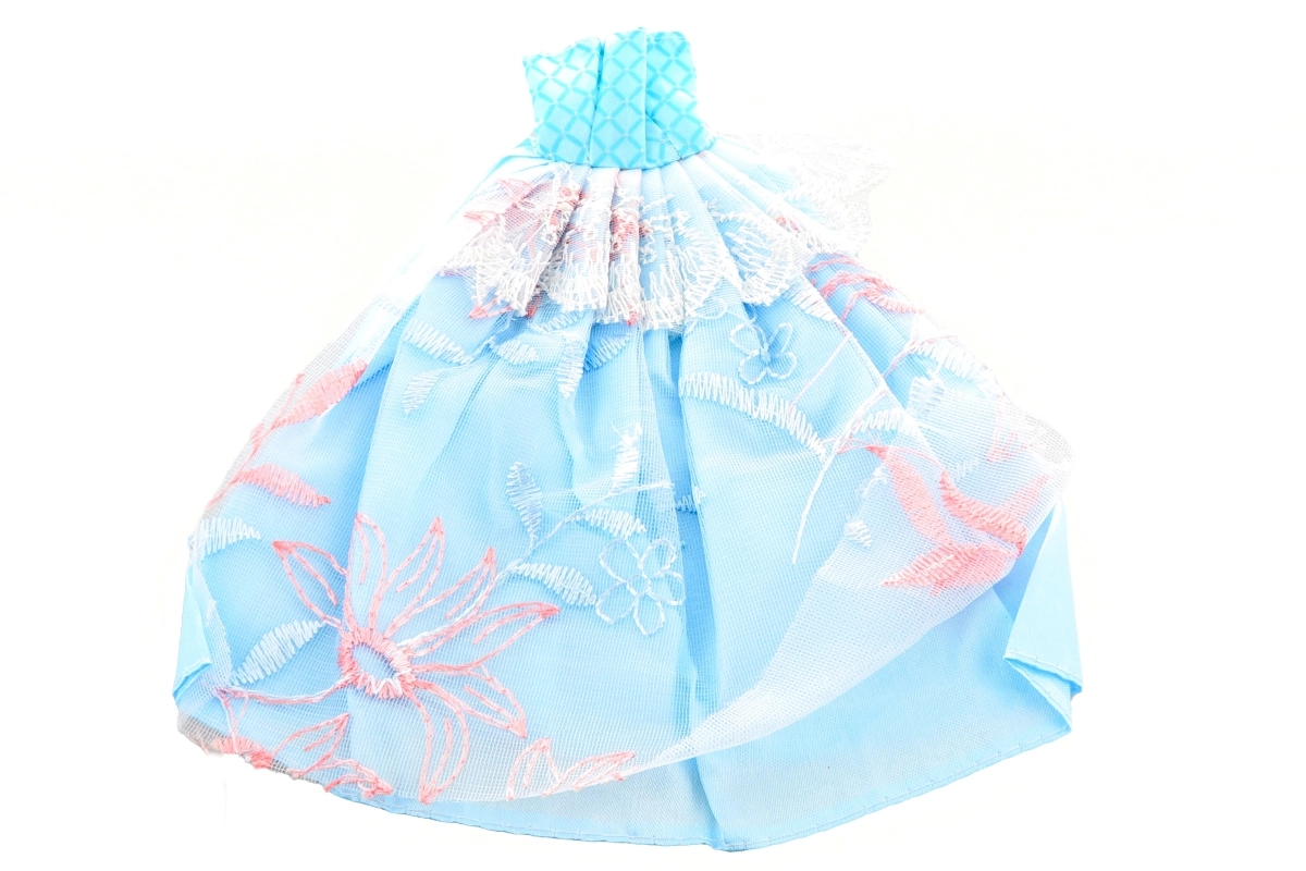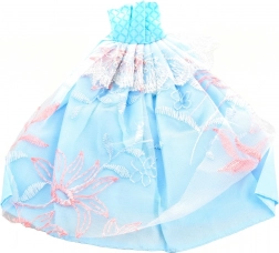 Ozdoby z čipky, trblietky a kvetinové motívy dodajú bábike slávnostný vzhľad.