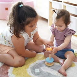 Vloženie krúžkov na podložku nielen že prináša deťom radosť, ale zároveň rozvíja ich koordinačné schopnosti a logické myslenie. Deti sa tiež učia rozpoznávať farby a pracovať s rôznymi tvarmi.