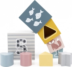 - Deti môžu kocky voľne skladať, učiť sa čísla, priraďovať tvary v triediči a spoznávať zvieratká