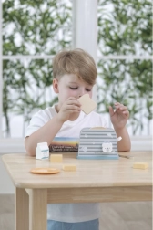 Drevený hriankovač je navrhnutý tak, aby deťom poskytol bezpečnú a zábavnú formu hry na kuchyňu. Jednoduchý dizajn a odolná štruktúra je ideálny pre imaginárne hry a rozvoj motorických zručností.