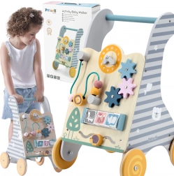 Drevené vzdelávacie chodítko od Viga Toys je vynikajúcim nástrojom pre rozvoj motorických schopností a kognitívnych zručností u detí od 18 mesiacov. Multifunkčný dizajn kombinuje stabilné chodítko a interaktívny vzdelávací panel, ktorý deti učí rozoznávať tvary a farby. Otočné elementy ako ozubené kolesá, dráhy so zvieratkami a bočné panely udržia detskú pozornosť a zábavu.