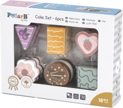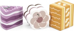 Táto sada obsahuje šesť krásne spracovaných drevených zákuskov rôznych tvarov a farieb – plátky torty, koliesko, srdiečko či hranolček. Deti sa môžu hrať na cukráreň, servírovať medvedíkovi alebo usporiadať čajový večierok. Každý kúsok dobre sedí do detskej ruky a láka k opakovanému hraniu.