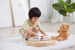 Masívne drevo s hladkým lakovaným povrchom je príjemné na dotyk a odolné proti opotrebovaniu. Hra s dezertmi rozvíja jemnú motoriku, koordinačné zručnosti, komunikáciu aj sociálnu hru. Sada je vhodná pre deti od 18 mesiacov a výborne doplní detskú kuchynku či poslúži ako darček.