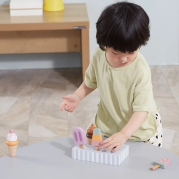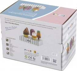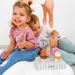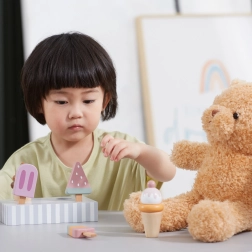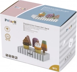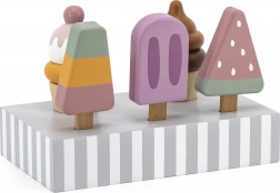 Sada 5 drevených nanukov v lákavých farbách prináša deťom nekonečnú porciu zábavy. Nanuky sú umiestnené na stabilnom drevenom stojane, ktorý slúži na vystavenie aj prehľadné ukladanie. Všetko je vyrobené z kvalitného dreva a maľované bezpečnými, netoxickými farbami.