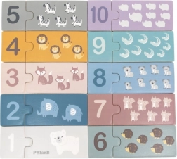 Obsahuje spolu 31 drevených dielikov s ilustráciami zvierat a čísel, ktoré deti priraďujú a skladajú do správneho poradia. Kvalitné drevené spracovanie, príjemné farby a odolnosť robia zo sady skvelú voľbu na každodenné hranie aj učenie.