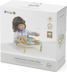 Multifunkčný drevený stolík VIGA PolarB je dostatočne priestranný, aby sa pri ňom mohlo hrať viac detí naraz. Kvalitné spracovanie z dreva a kovových vodičov zaisťuje stabilitu a dlhú životnosť. Deti môžu objavovať zvuky na xylofóne aj gongu, precvičovať motoriku na korálkovom bludisku, vkladať tvary do správnych otvorov a skúmať princípy ozubených koliesok.