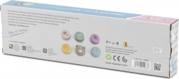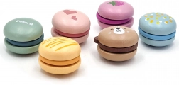 Táto rozkošná sada obsahuje šesť pestrofarebných drevených makróniek s originálnymi motívmi. Diely sa k sebe pripájajú pomocou suchého zipsu, takže si deti ľahko „namiešajú“ nové príchute a vzory. Ideálny doplnok do detskej kuchynky, obchodu aj cukrárne.