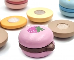 Makrónky sú vyrobené z kvalitného dreva a ošetrené netoxickými farbami – ideálne na každodenné hranie malých cukrárov.