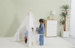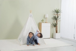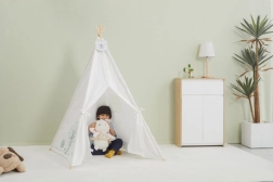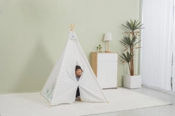 Teepee stan POLARB premení každú izbu na čarovné miesto plné fantázie. Minimalistický dizajn v bielej farbe s milými zvieracími motívmi zapadne do moderného interiéru a vytvorí deťom pokojný, inšpiratívny priestor. Pevná konštrukcia s drevenými tyčami zaistí stabilitu pri hraní a ľahko ho postavíte aj zložíte.