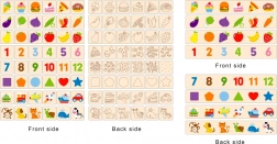 Deti vkladajú drevené dieliky do správnych otvorov podľa obrázkov na doske. Cvičia logiku, pozornosť a jemnú motoriku pri každej hre.