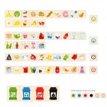 Táto vzdelávacia hračka VIGA je ideálna pre deti, ktoré sa učia základy triedenia odpadu. Dodáva sa s drevenou krabicou, ktorá má otvory na vhadzovanie doštičiek a tabuľkou s rôznymi odpadkovými košmi. Zahŕňa tiež 50 drevených doštičiek s obrázkami odpadu a farbami zodpovedajúcimi recyklačným kategóriám.