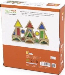 Súprava 24 drevených farebných kociek Viga je navrhnutá pre deti od 18 mesiacov. Tento vzdelávací a zábavný produkt podporuje kreativitu a rozvoj jemnej motoriky u batoliat, pričom je bezpečný pre malé deti.