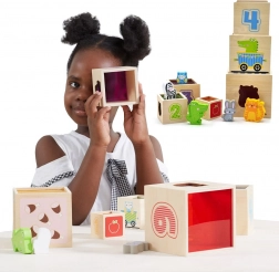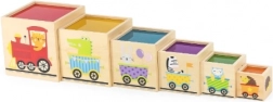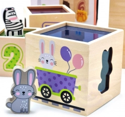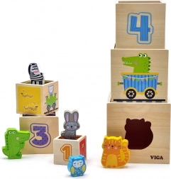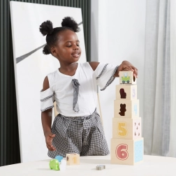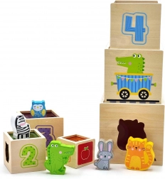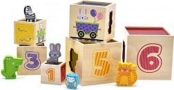 Tento úžasný set obsahuje šesť kociek rôznych veľkostí, z ktorých každá má svoje špecifické motívy. Deti sa tak učia rozoznávať čísla, tvary, farby, veľkosti a zvieratá. Kocky je možné ľahko umiestňovať jednu do druhej alebo ich skladať na seba, čo pomáha deťom pochopiť koncept usporiadania a poradia.