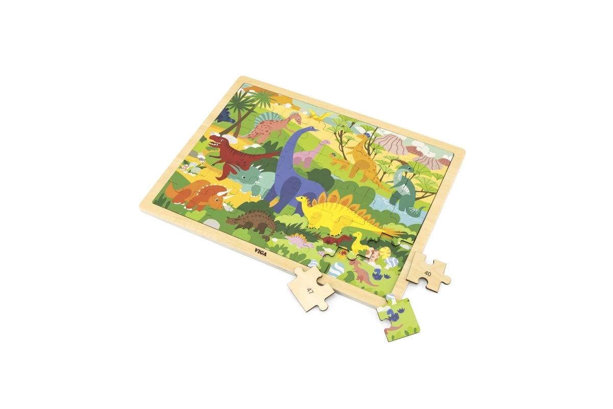 Doprajte deťom zábavné a vzdelávacie skladanie s drevenými puzzle s motívom dinosaurov. Vďaka 48 dielikom sú ideálne ako prvá „väčšia“ skladačka, ktorá postupne rozvíja zručnosti a sebavedomie malých staviteľov. Dieliky sú pevné, dobre sa držia a dajú sa pohodlne umiestňovať na drevenú dosku s rámčekom.
