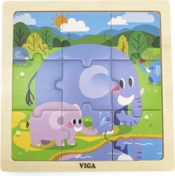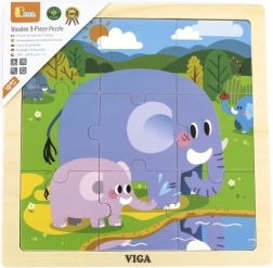 Roztomilé drevené puzzle so slonmi poteší malých staviteľov od 18 mesiacov. 9 dielikov na pevnej drevenej doske s rozmerom 22 × 22 × 1 cm podporujú jemnú motoriku, koordináciu a prvé logické myslenie.