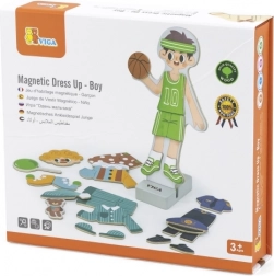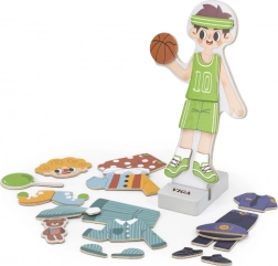 Táto kvalitná drevená hračka od značky VIGA ponúka zábavné prezliekanie magnetickej figúrky chlapca. Vďaka rôznym oblečkom a doplnkom deti ľahko vytvárajú originálne outfity, precvičujú pršteky a učia sa kombinovať farby aj štýly.