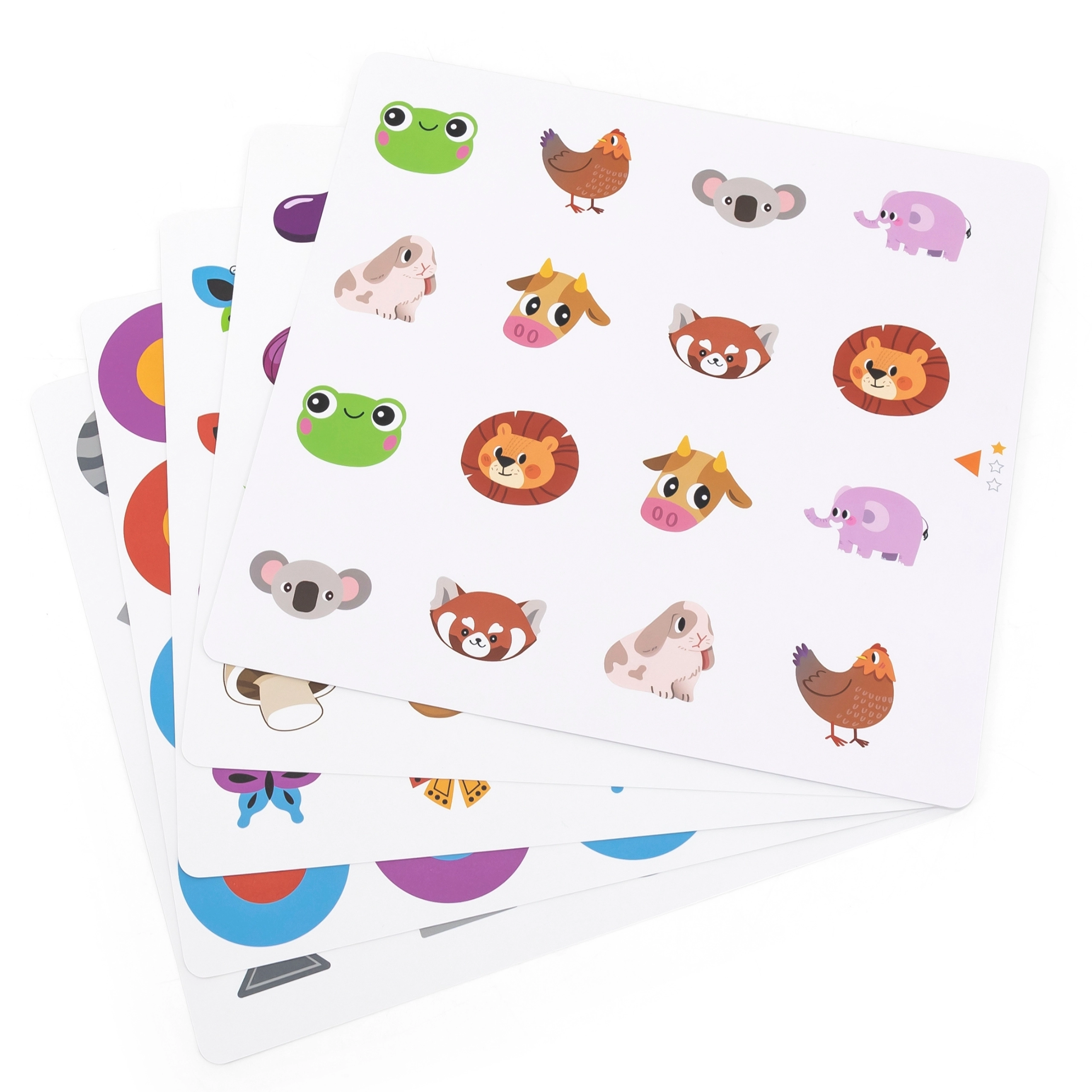 Súčasťou je 10 obojstranných kariet s rozmanitými motívmi (zvieratá, predmety, rastliny). Jednoducho ich vymeníte a prispôsobíte témy aj náročnosť veku dieťaťa.