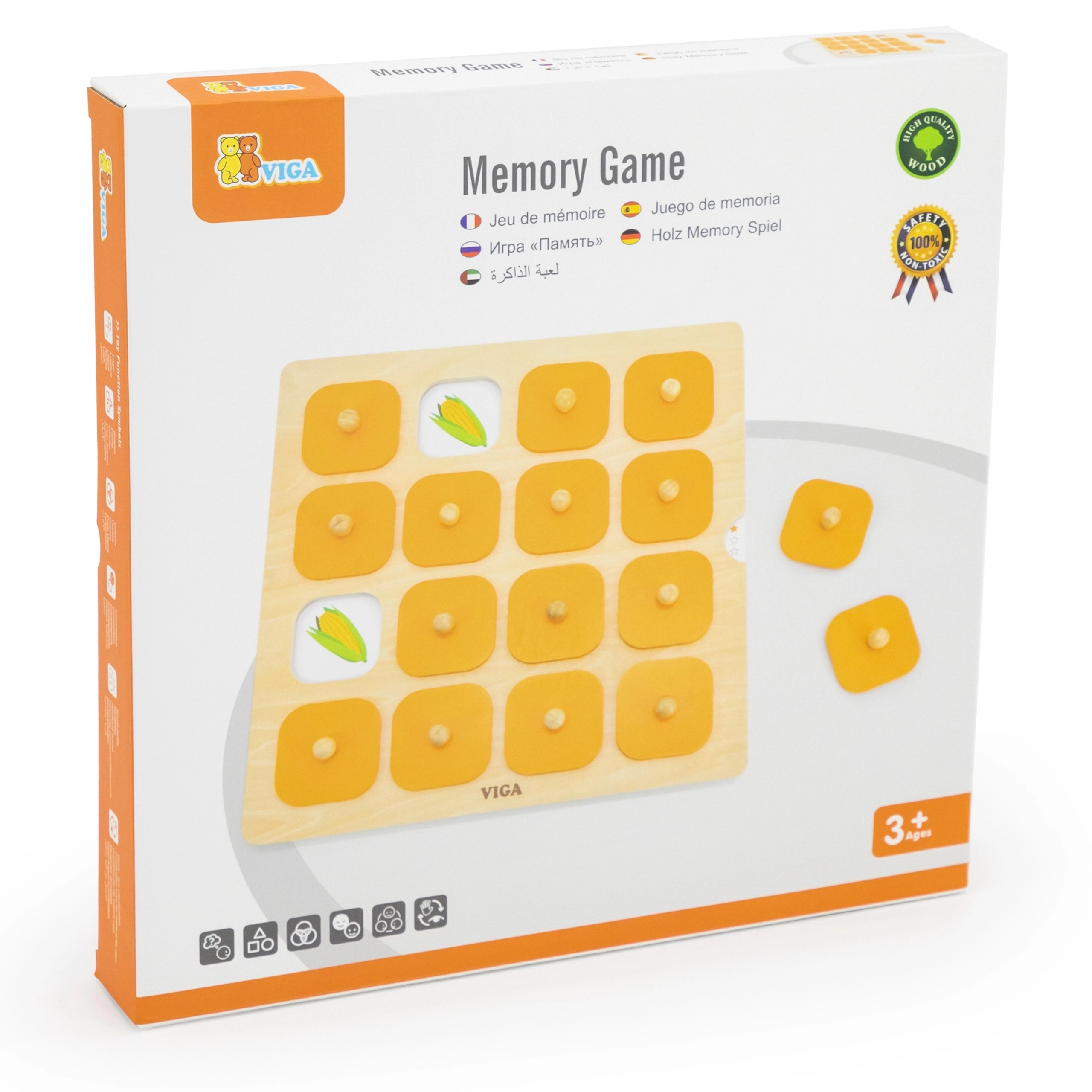 Objavte zábavnú a vzdelávaciu hru pre deti od 3 rokov – drevené memo Viga s vymeniteľnými kartami. Vďaka pevnej drevenej konštrukcii, ľahko uchopiteľným krytkám s kolíčkami a 10 obojstranným kartám s obrázkami rozvíja pamäť, koncentráciu aj logické myslenie a zároveň prináša radosť zo spoločnej hry.