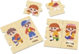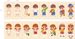 Táto kvalitná drevená vzdelávacia hračka učí deti správnemu postupu obliekania formou skladania nadväzujúcich dielikov s obrázkami chlapca a dievčaťa. Každý dielik má jedinečný motív a presne do seba zapadá, takže si deti pri hre precvičia vnímanie súvislostí aj trpezlivosť.