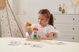 Súčasťou sú karty s rôznymi vzormi – deti trénujú logiku, pozornosť a presnosť pri skladaní krok za krokom.
