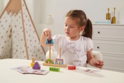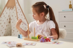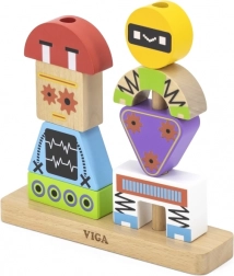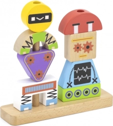 Objavte múdru hračku, ktorá rastie s deťmi. Drevené dieliky v rôznych tvaroch a farbách sa ľahko nasadzujú na kolíky základne a umožňujú skladať rozličné robotické postavy. Priložené karty s predlohami vedú od jednoduchých po náročnejšie kombinácie a rozvíjajú sústredenie aj trpezlivosť.