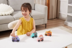 Vďaka kompaktnej veľkosti sa autíčka ľahko držia aj tým najmenším rúčkam. Hra podporuje rozvoj jemnej motoriky, koordinačných zručností, rozpoznávania farieb a logického myslenia. Sada je skvelým doplnkom k detským kuchynkám či mestám a perfektnou voľbou pre spoločnú hru súrodencov.