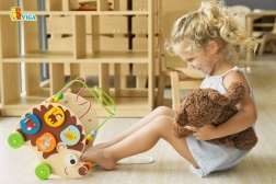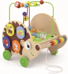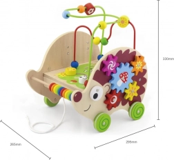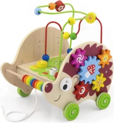 Táto multifunkčná ťahacia hračka v podobe ježka od VIGA spája obľúbené vzdelávacie prvky do jedného šikovného hracieho centra. Deti baví posúvať koráliky v guľôčkovom labyrinte, točiť ozubenými kolieskami, prechádzať labyrint so zvieratkami, skúšať počítanie a objavovať náučné otočné prvky. Pestrofarebné prevedenie prirodzene láka k objavovaniu a podporuje sústredenie.