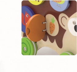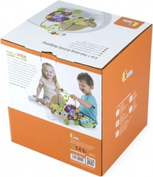 Počítanie, posuvný labyrint so zvieratkami, guľôčkový labyrint, ozubené kolieska a náučné otočné prvky – všetko na jednej hračke pre dlhé hodiny objavovania.