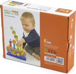 Drevené skákajúce zvieratká Viga potešia každé dieťa svojimi intenzívnymi farbami a veselými postavičkami žirafy, opičky, leva a zebry. Stačí stlačiť hlavičku a zvieratko z lode Noemovej archy vyskočí – zábavná hra podporuje koordináciu oko–ruka, učenie farieb a spoznávanie zvierat. Bezpečné prevedenie z kvalitného dreva a netoxické farby zaručujú pokojnú a radostnú hru.