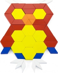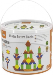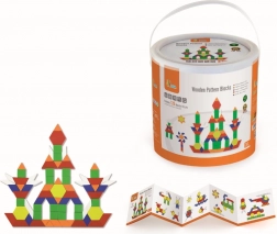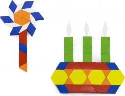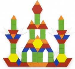 Veľký počet plochých drevených blokov v rôznych tvaroch a farbách podporuje fantáziu a rozvoj priestorovej predstavivosti. Deti môžu skladať vzory, zvieratá aj celé obrázky.