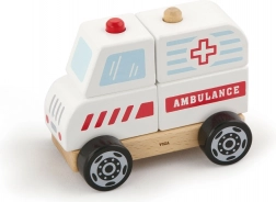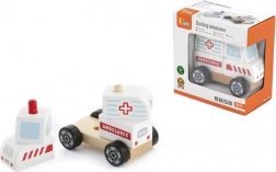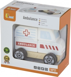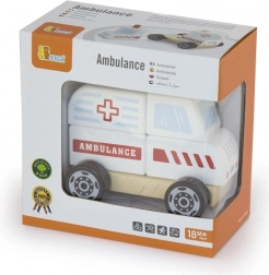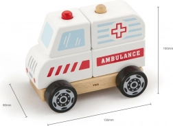 Táto drevená sanitka je skvelou kombináciou skladačky a pojazdného autíčka. Deti môžu jednotlivé diely zostaviť do podoby sanitky a potom si užiť jazdu vďaka hladko sa otáčajúcim kolieskam. Robustné drevo, kvalitné farby a zaoblené hrany zaisťujú bezpečné hranie a dlhú životnosť.