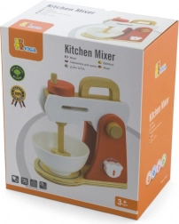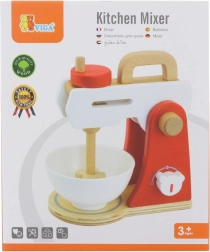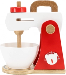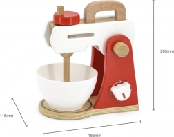 Mixér sa môže pochváliť červeno-bielym dizajnom a drevenými prvkami, ktoré z neho robia realistickú kópiu skutočného kuchynského prístroja.