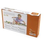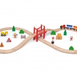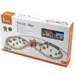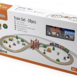 Drevená vláčikodráha ponúka kompletnú sadu o 39 kusoch, čo umožňuje nekonečné možnosti zostavenia a rozvoj detskej fantázie.