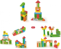 Objavte hravú stavebnicu, ktorá rastie s vašimi deťmi. Sada drevených kociek s motívmi zoo ponúka pestrú paletu tvarov a farieb, ideálnu na prvé stavby, triedenie aj rozvoj fantázie. Súčasťou je obrázková brožúra so stavebnými plánmi v 3 náročnostiach, takže si prídu na svoje začiatočníci aj malí stavitelia.