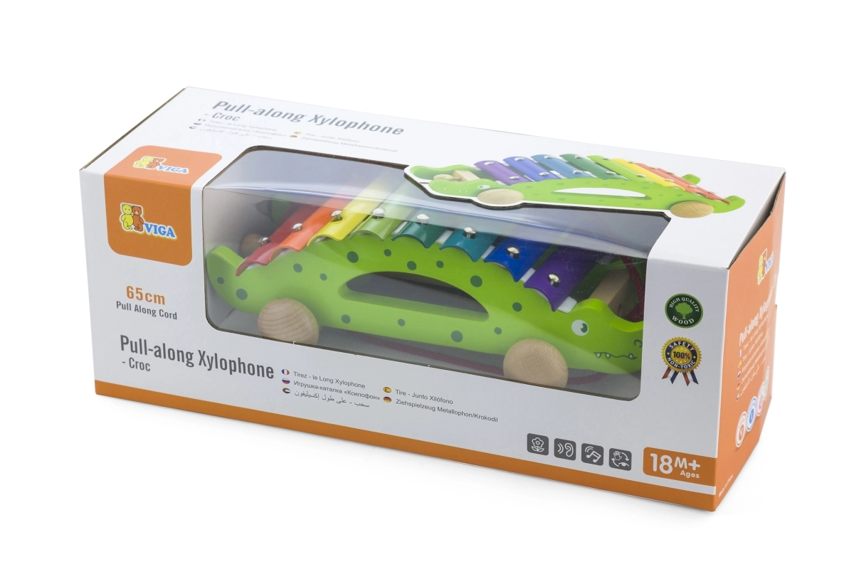 Rozhýbte detskú fantáziu s týmto roztomilým dreveným ťahacím xylofónom v tvare krokodíla, ktorý spája pohyb a hudobné objavovanie. Vďaka xylofónovým klávesom, pevnej drevenej konštrukcii a šnúrke dlhej cca 65 cm si deti užijú množstvo zábavy aj rozvoj motoriky a rytmu.