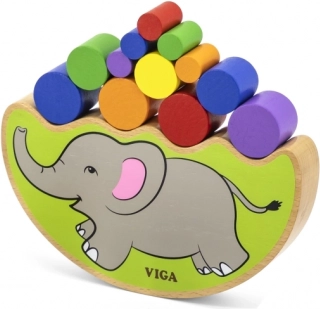- Slonia balančná základňa, farebné drevené valčeky, farebná kocka