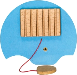 Ryhovaná lišta vydáva pri prechádzaní paličkou charakteristické zvuky. Deti trénujú úchop, koordináciu a rytmické cítenie.