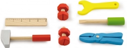 Opasok s dreveným náradím je perfektným nástrojom pre malé deti, ktoré si radi hrajú na majstrov. Obsahuje všetko, čo váš malý staviteľ potrebuje na svoju prácu.