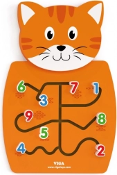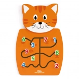 Drevená mačka s labyrintmi na pohyb čísel a rozvoj jemnej motoriky.
