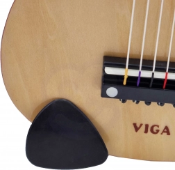 Táto detská akustická gitara VIGA je zmenšenou verziou klasickej gitary – vyzerá a funguje ako skutočný nástroj, takže deti si rýchlo osvoja správne návyky. Prírodné drevené telo s hladkým povrchom, šiestimi strunami a ladiacimi kolíkmi podporuje realistický zážitok z hry a motivuje k pravidelnému cvičeniu.