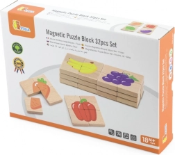 Set obsahuje celkom 32 magnetických dielikov, ktoré sú ľahko uchopiteľné a manipulovateľné. Ilustrácie ovocných motívov sú pestré a povzbudia predstavivosť vášho dieťaťa.
