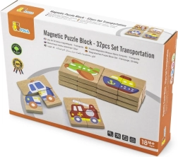 Táto úchvatná magnetická hračka umožňuje deťom skladať obrázky zo 4 blokov, ktoré po spojení tvoria kompletný dopravný prostriedok. Môžu sa ľahko pripevniť na tabuľu a stať sa tak súčasťou obrazu alebo poslúžiť ako inšpirácia pre kreslenie. Vysokokvalitné drevo a netoxické farby zaručujú, že hračka je úplne bezpečná pre deti.