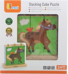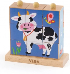Z 9 kociek poskladáte 4 rôzne motívy – kravičku, sliepočku, koníka a psíka. Deti si precvičia vizuálne skladanie, rozlišovanie farieb a trénujú trpezlivosť.