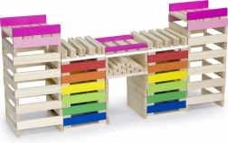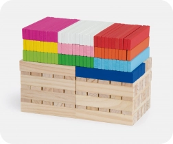 Kocky sú lakované netoxickými farbami v živých farbách, aby zabezpečili bezpečnú hru.