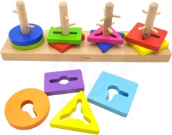 Drevený geometrický triediaci skladací set Viga ponúka deťom zábavu pri učení sa kľúčovým zručnostiam. Skladá sa z piatich kolíkov, na ktoré deti umiestňujú príslušné tvary, a výzvou je správne zladenie tvarov k zodpovedajúcim výstupkom. Jasné farby priťahujú a stimulujú zmysly malých detí.