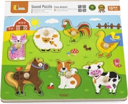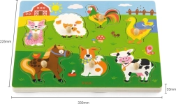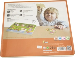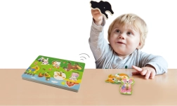 Drevená vkladačka so zvieratkami, zvuková. Po vložení správneho zvieratka sa ozve zvuk, ktorý zvieratko vydáva. Rozmery dosky cca 30 x 22,5 x 2 cm. Napájanie 2 x AAA batérie (nie sú súčasťou balenia). Rozmery balenia cca 30 x 27 x 2 cm. Vek 18m+