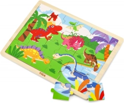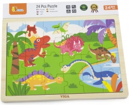 Drevené puzzle s roztomilým motívom dinosaurov potešia všetkých malých nadšencov do praveku. Vďaka 24 dielikom sú puzzle skvelou voľbou pre prvé samostatné skladanie, rozvoj koordinácie oko–ruka aj trpezlivosti. Kvalitné spracovanie a hladké hrany zabezpečujú bezpečnú a príjemnú hru.